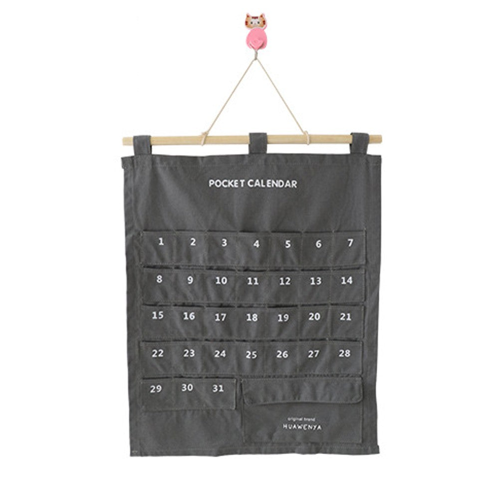 1 X Hanging Calendar Storage Bag with 32 Pockets Hanging Calendar Memo Bag Grey