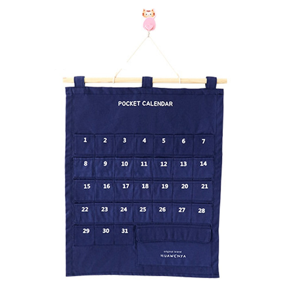 1 X Hanging Calendar Storage Bag with 32 Pockets Hanging Calendar Memo Bag Navy Blue