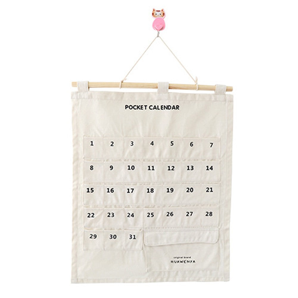 1 X Hanging Calendar Storage Bag with 32 Pockets Hanging Calendar Memo Bag White