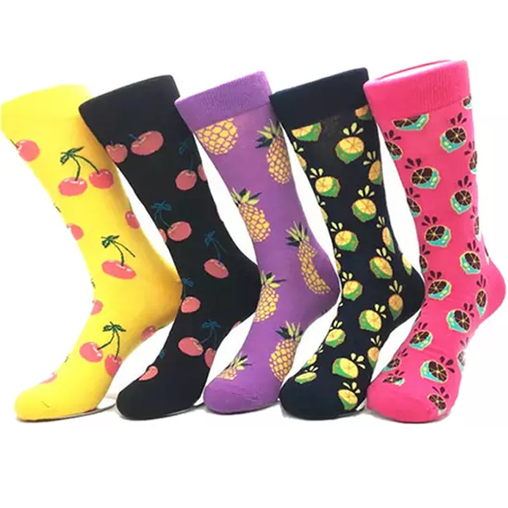 10 Pairs of Novelty Printed Men's Socks Set Fruits Pattern and Colourful Graphics Pattern