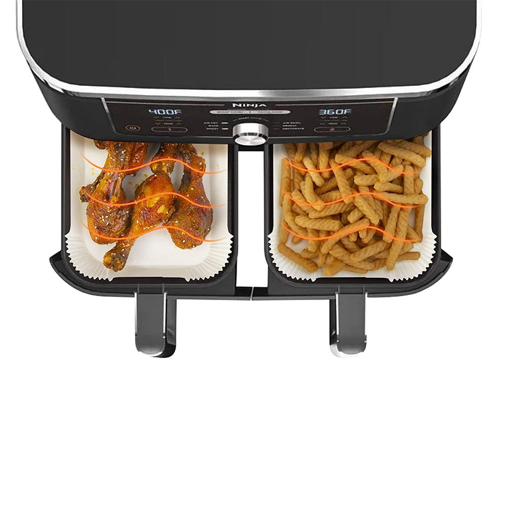 Our square parchment paper for your air fryer is great for cooking,frying and baking various foods,sunch as make delicious pizza, chicken wings, steak and fried vegetables ,enjoy food without sticking to the air fryer basket