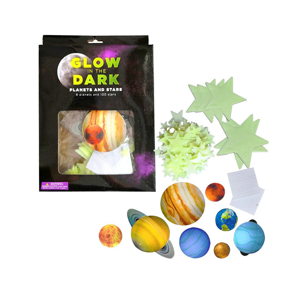 100pcs Star and Planets Luminous Wall Sticker with Double-Sided Tape