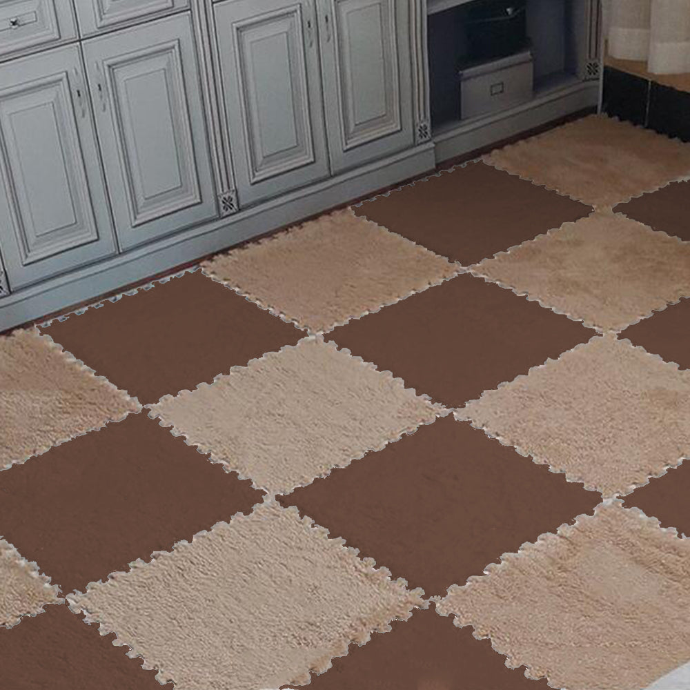 10Pcs Coffee Apricot Soft Plush EVA Foam Interlocking Floor Play Mats