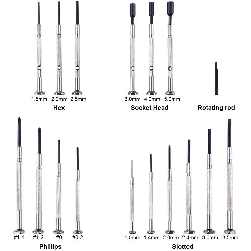 16 pieces of different screwdriver, perfect for for Jewelry Repair, Watch Repair, Eyeglass Repair, and More.