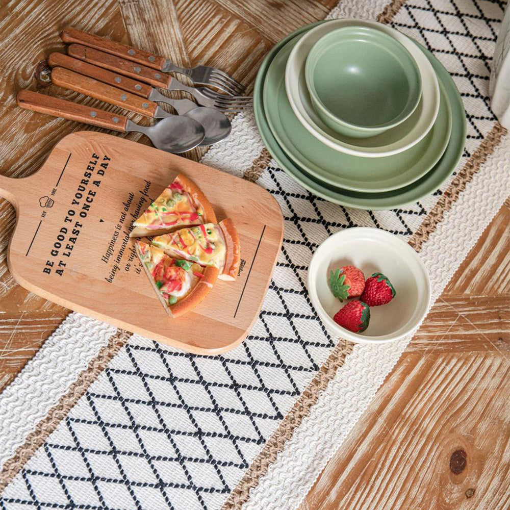 160x30cm Cotton Linen Weave Table Runner with Tassels Style 4