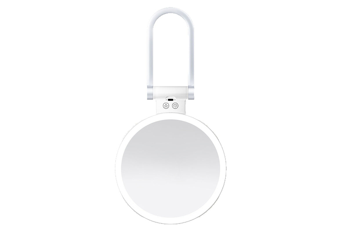 With a flexible foldaway handle, it can be hung on the wall or stand on any flat surface.