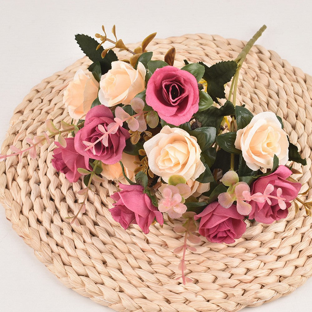 2 X Artificial Wine Red Rose Flowers Bouquet Home Office Wedding Decoration Photography Props