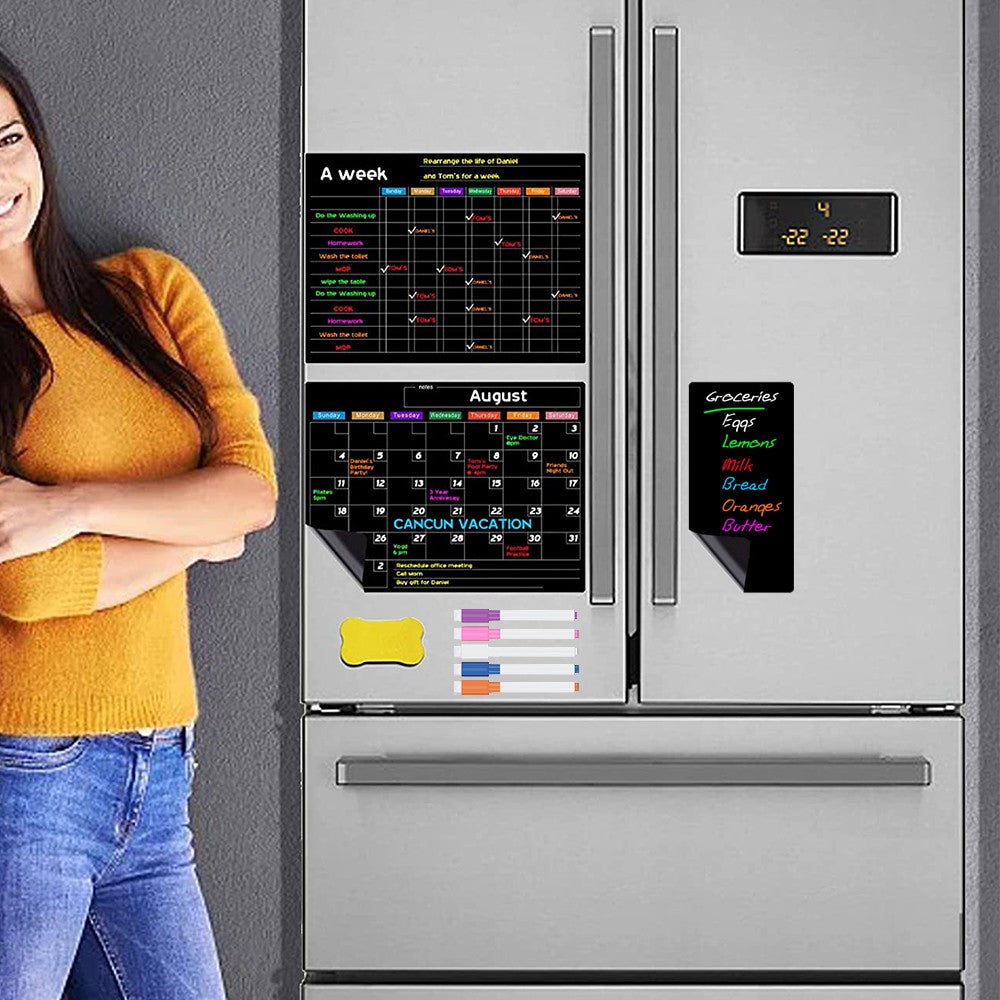 2 X Magnetic Dry Erase Calendar Set for Refrigerator Magnetic Chalkboard Planner Organizer with 5 Pens