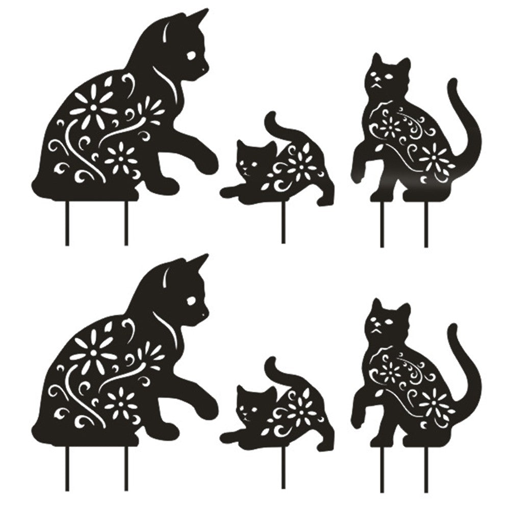 2 X Set of 3Pcs Metal Cat Silhouette Ornaments Garden Stakes Sculptures Statue Lawn Garden Art Decor