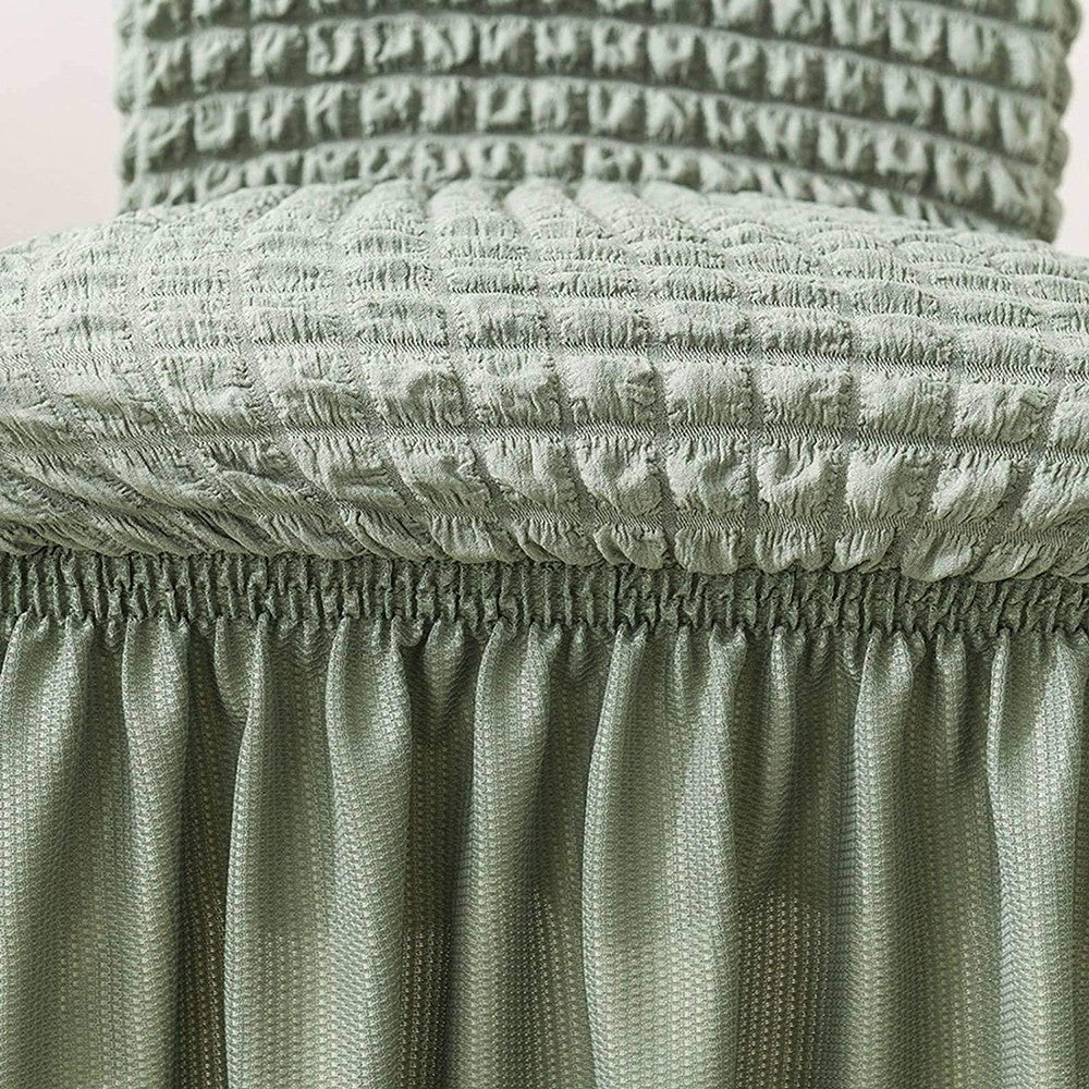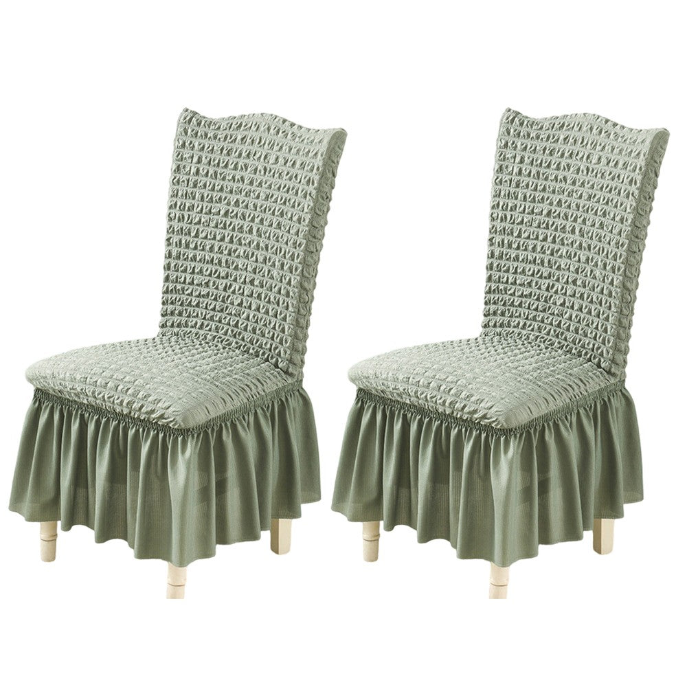 2 X Soft Fabric Dining Chair Cover Removable Chair Covers with Lace Skirt Green