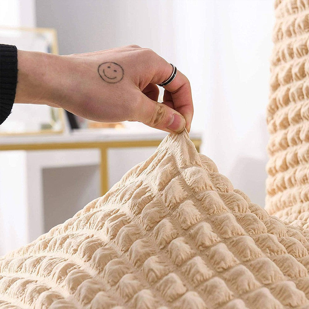 This chair cover is a combination of cushion cover, backrest cover and chair cover skirt, which perfectly wraps your chair, prevents stains and scratches.