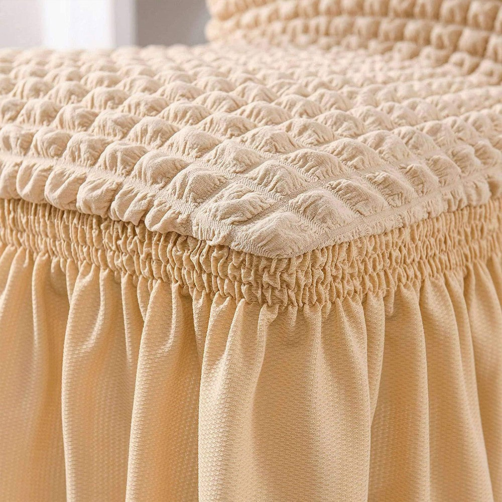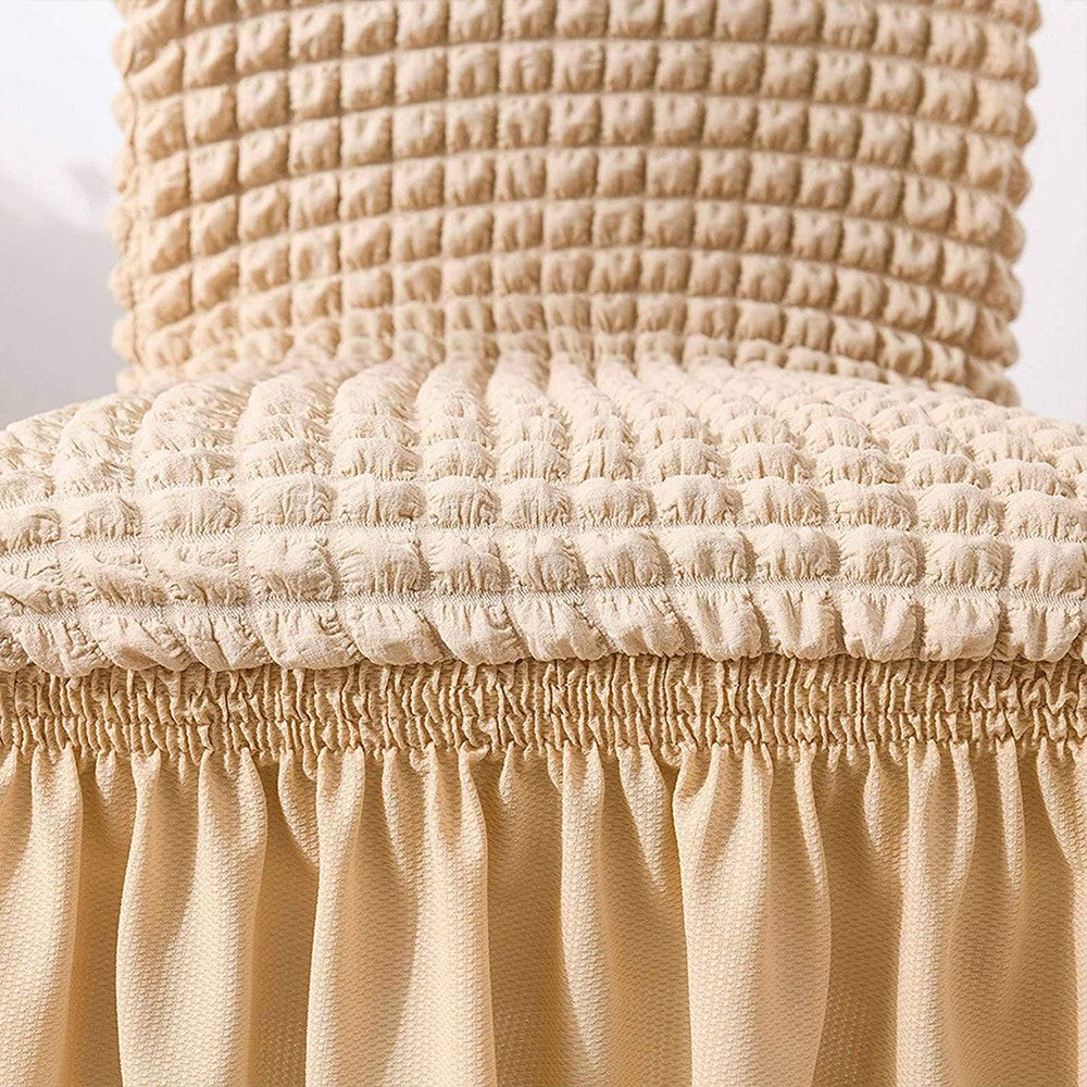 Key Words: Chair Cover with Lace Skirt, Dining Chair Seat Cover, High Back Chair Slipcover, Seersucker Fabric Chair Covers