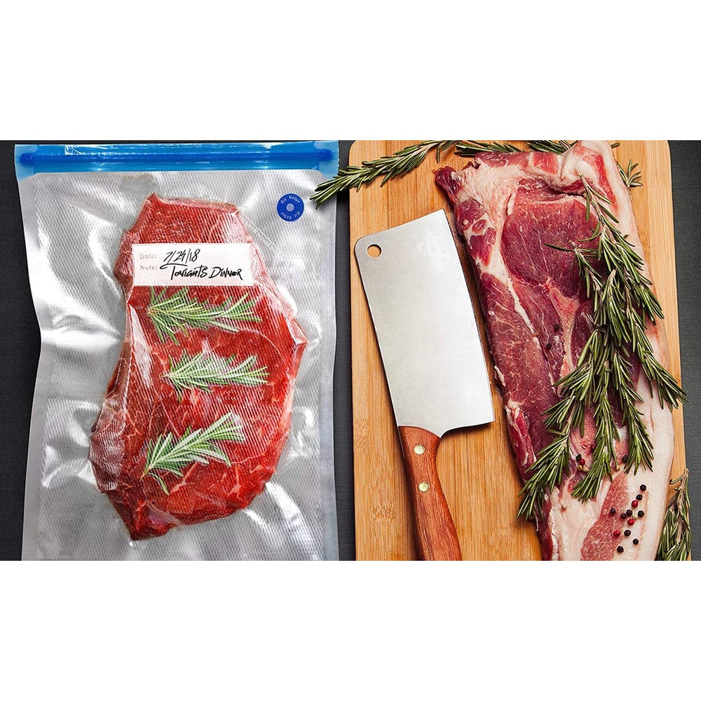 Designed to keep your food fresh, these reusable plastic bags come with a practical vacuum sealer, perfect for sous vide cooking.