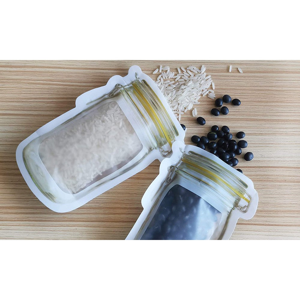 Aiming to preserve food for long, these reusable Mason jar ziplock bags feature PE material and easy-to-use seal design.