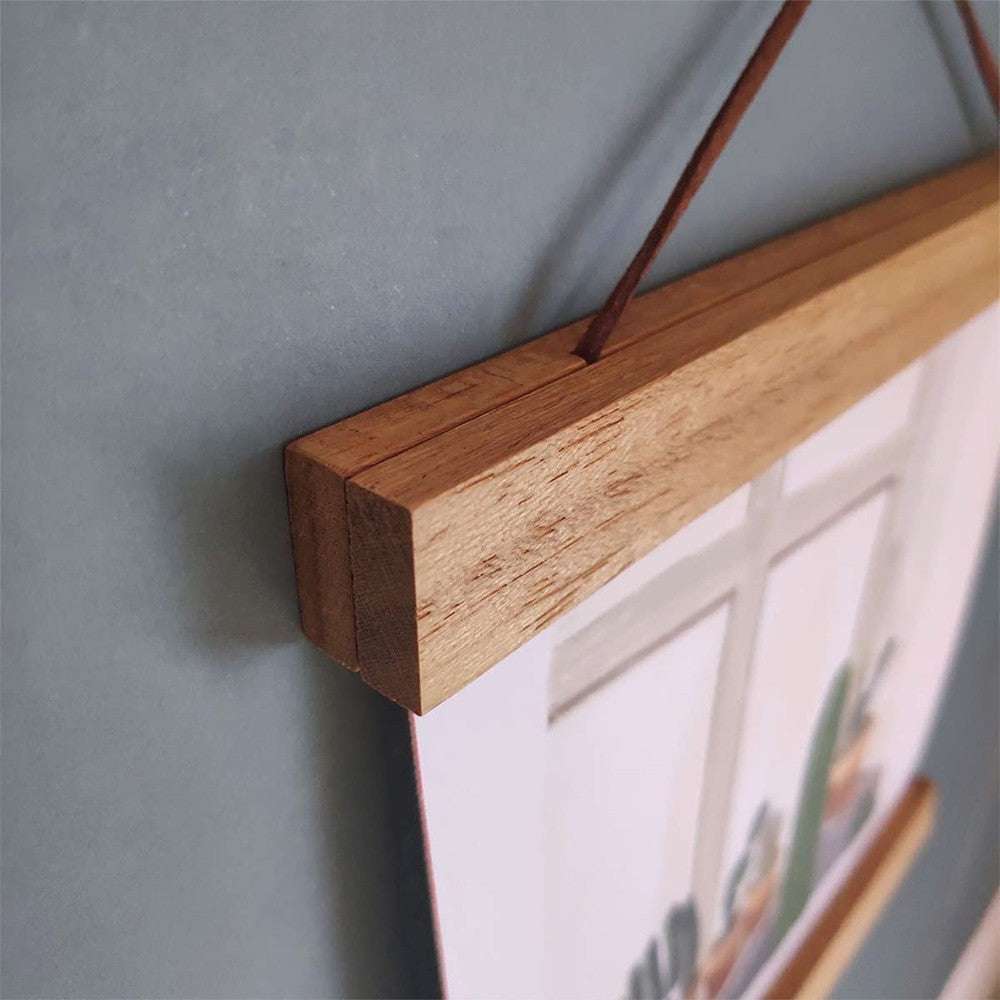 21cm Magnetic Teak Wood Poster Frame Painting Scroll Photo Picture Hanger