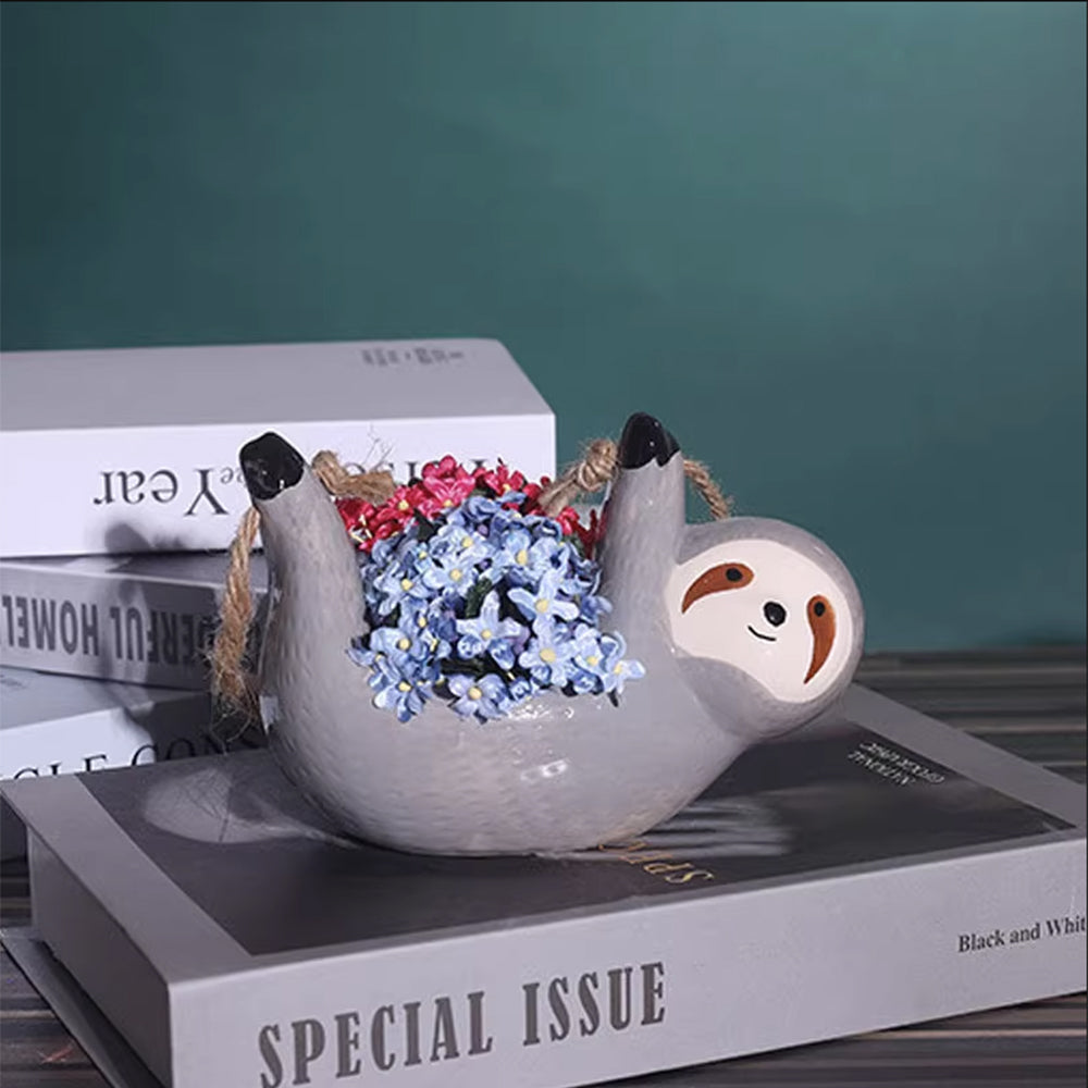 22cm Sloth Hanging Planter Sloth Flower Pot Succulent Pot Garden Decor Grey
