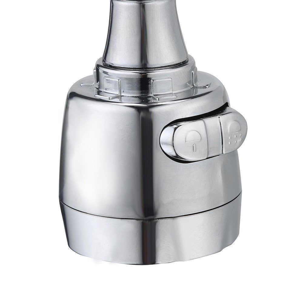 360 degree Rotating: It is very flexible and easy to move around. It does not stay pointed in one area if you are hoping to control the direction of it by its neck. It allows you to spray around the whole sink bowl.
