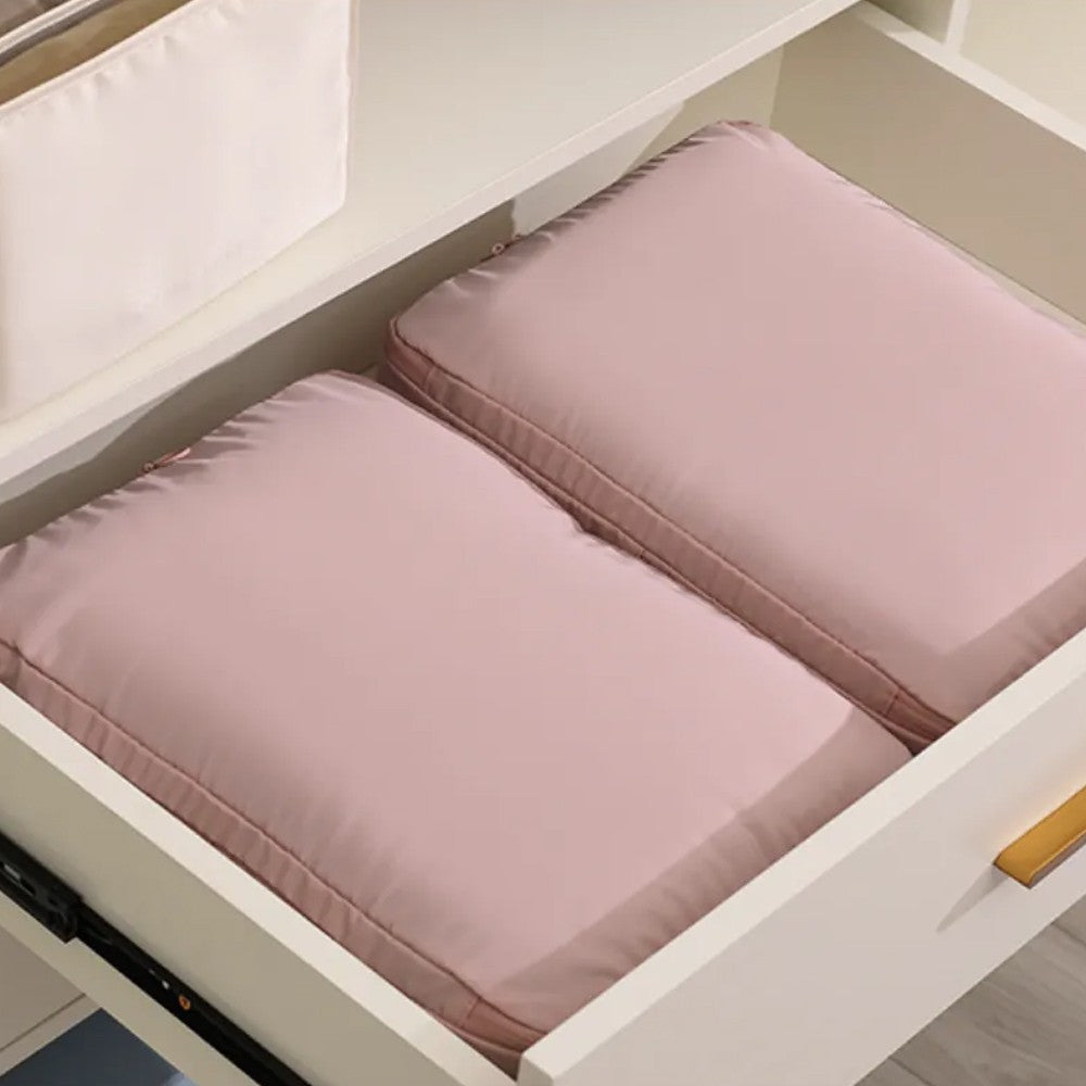 2Pcs Compression Storage Bag Travel Packing Cube Seasonal Clothes Organizer Bag Pink