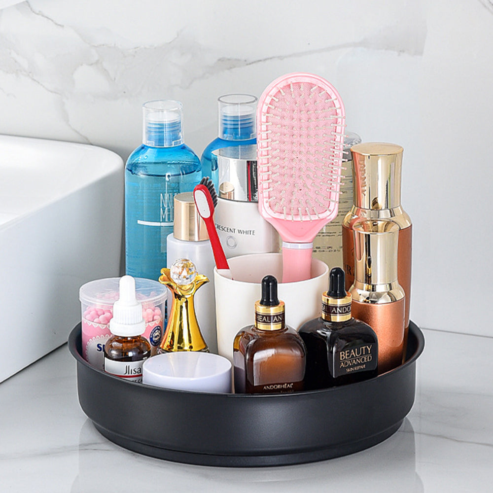 360 degree rotating design: very practical and fashionable. Allowing you to access the items you need with a simple spin. This Organizer is perfect for limited space usages, such as cabinets and cupboards. The surface on the turntable keeps items in place and the lip prevents products from falling out.