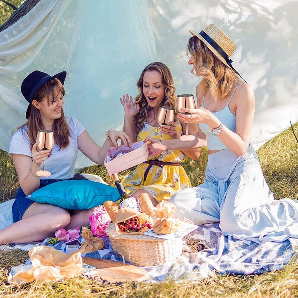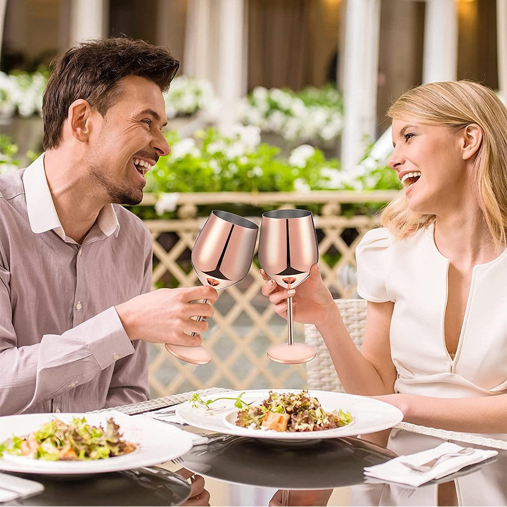 2Pcs Stainless Steel Stemmed Wine Glasses Shatterproof Wine Goblets Rose Gold