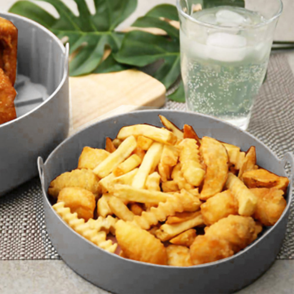 Use air fryer silicone pot to handmade healthy and delicious fried food without producing sticky and burning residue, easy to use and clean, enjoying happy hours with your family and friend.