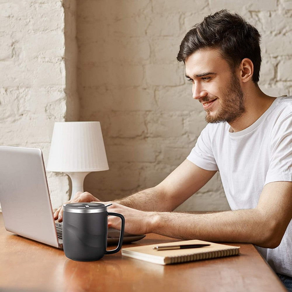 2X Black Blue Stainless Steel Coffee Mug Coffee Drinking Cup with Lid