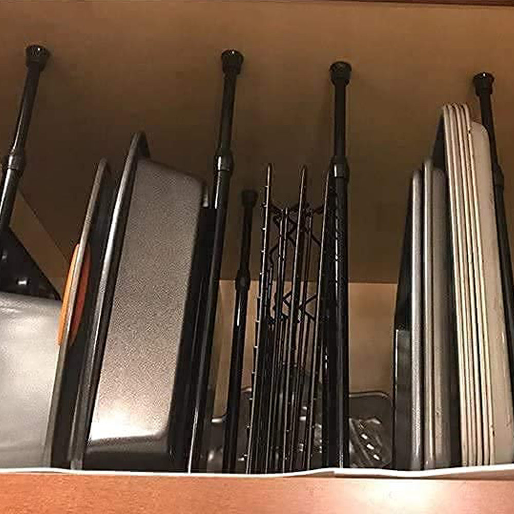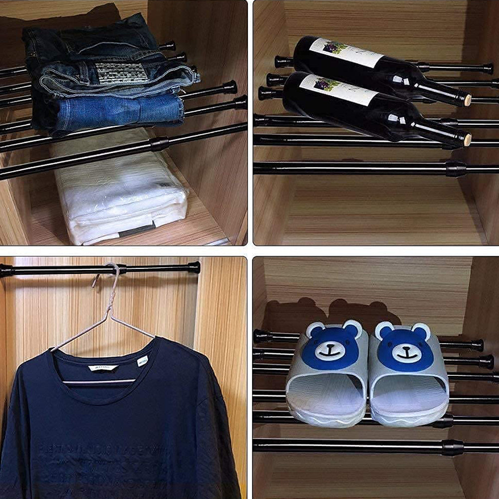 Please Note: Each rod is composed of two poles overlapping each other, and the two poles will separate if the rod is fully stretched. The overlapping part can bears better load, so the shorter the stretched length, the better the load bearing. For example, the application area is 140cm, and it is better to buy 105-190cm than 83-150cm