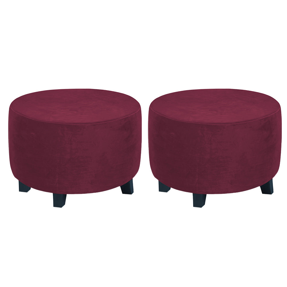 2X Round Ottoman Cover Foot Stool Slipcover Wine Red