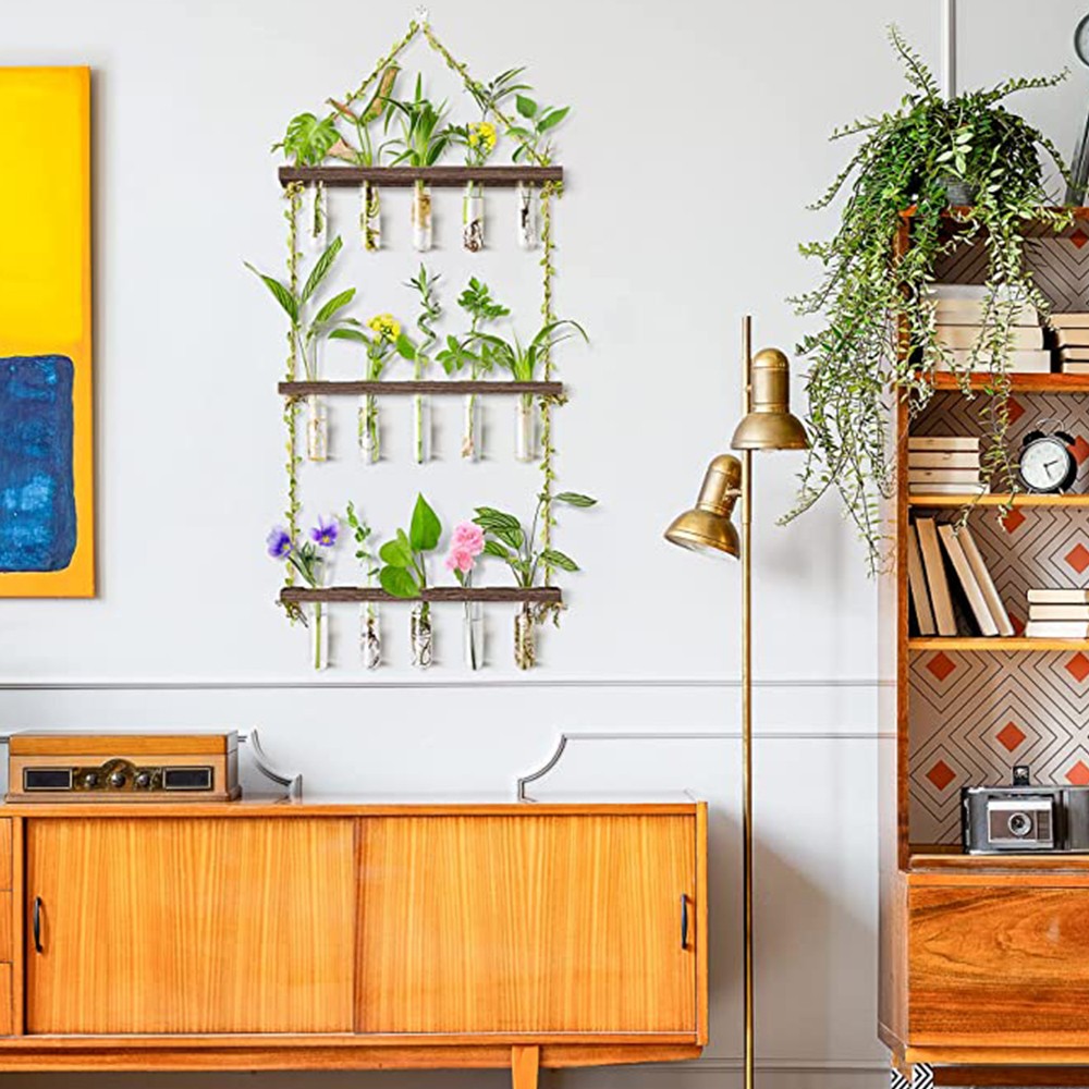 This unique test tube plant display stand set is a good choice for propagating hydroponic plants, cuttings or buds.
