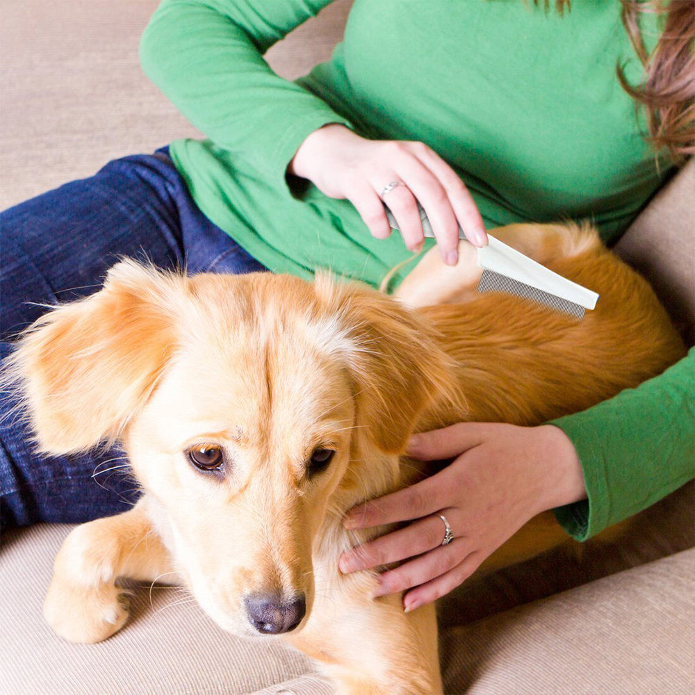 While combing, pay particular attention to areas around the ears, nape of neck, and base of tail
