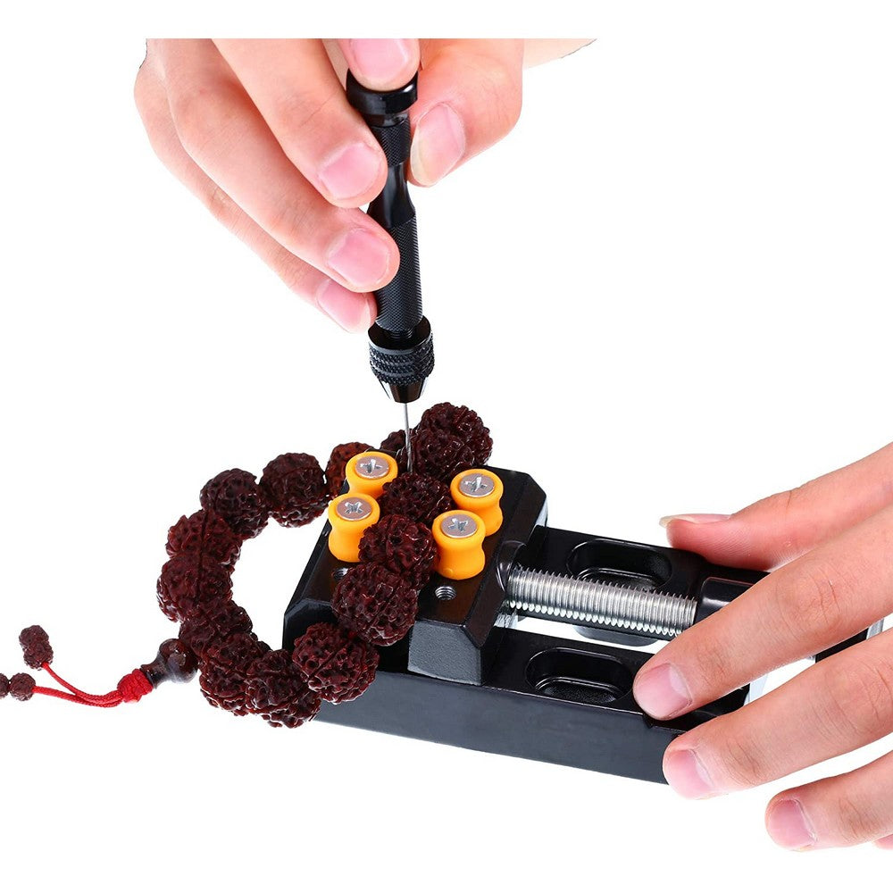 Bench vise: made of aluminum alloy and plastic, its light weight and small size make it suitable for you to hold and carry, designed with 4 plastic clips for clamping square, round and irregular objects of 55mm (Max) size.