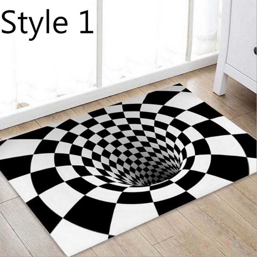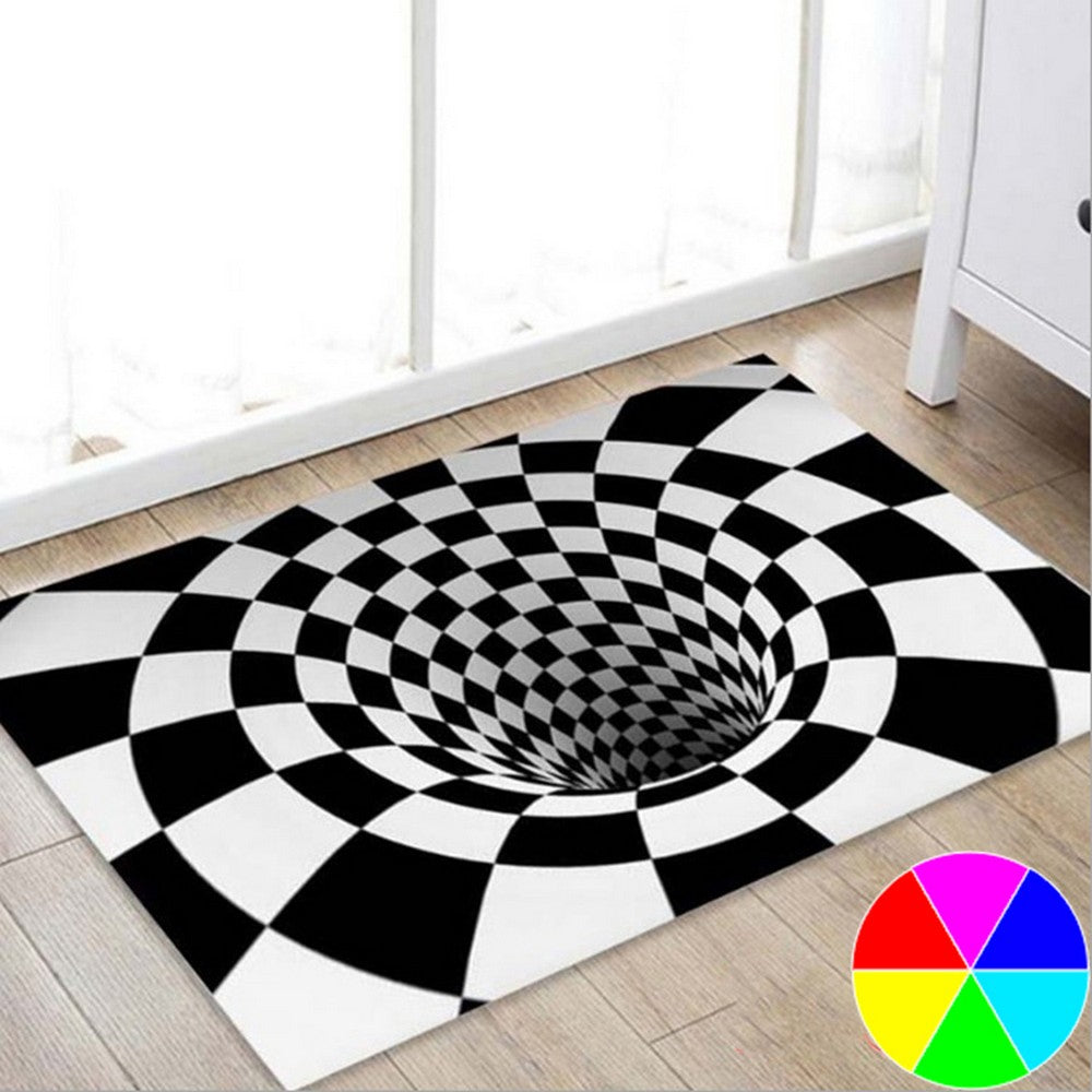 - Uses an illusion path combined design. It gives the impression of floating over a black hole. The 3D Illusion carpet becomes a unique eye-catcher and special decoration in your home. Your friends and guests will be delighted.