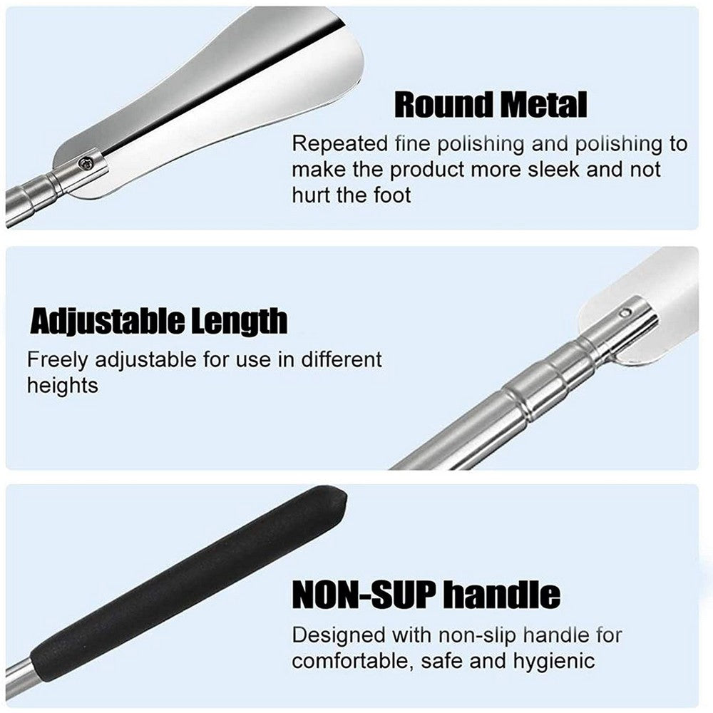 4 X Extendable Shoe Lifter Adjustable Length Stainless Steel Shoe Spoon for Elders Pregnant Woman