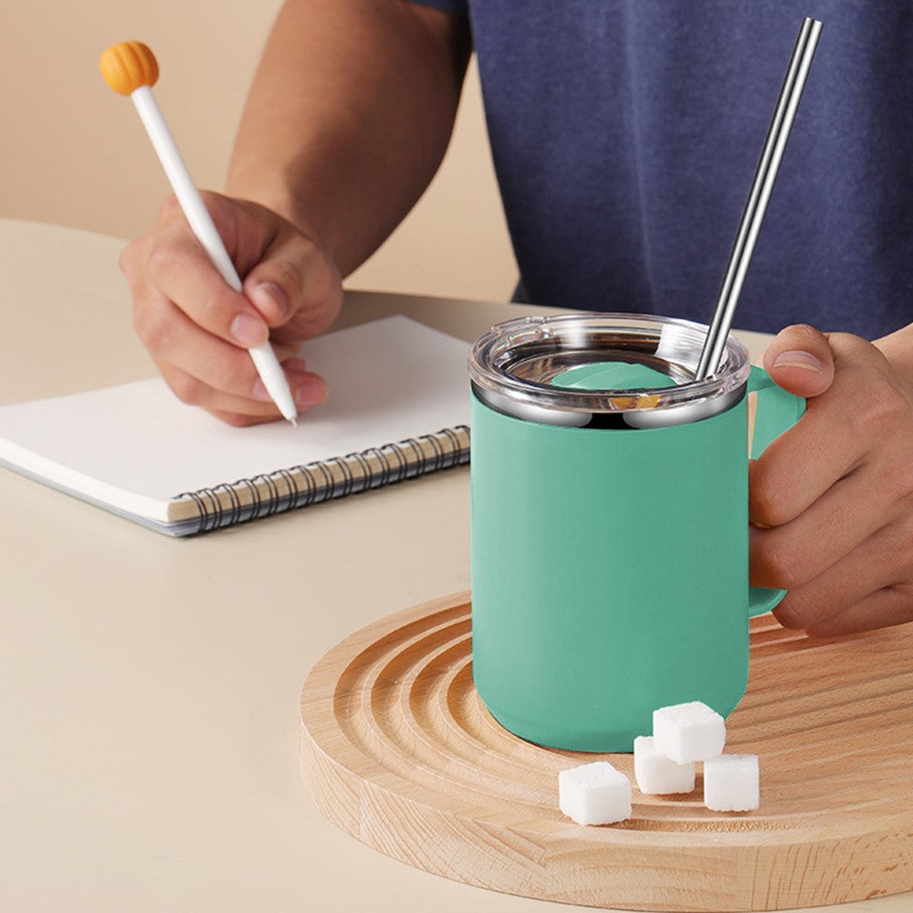 450mL Stainless Steel Coffee Mug Milk Cup with Handle and Lid Green