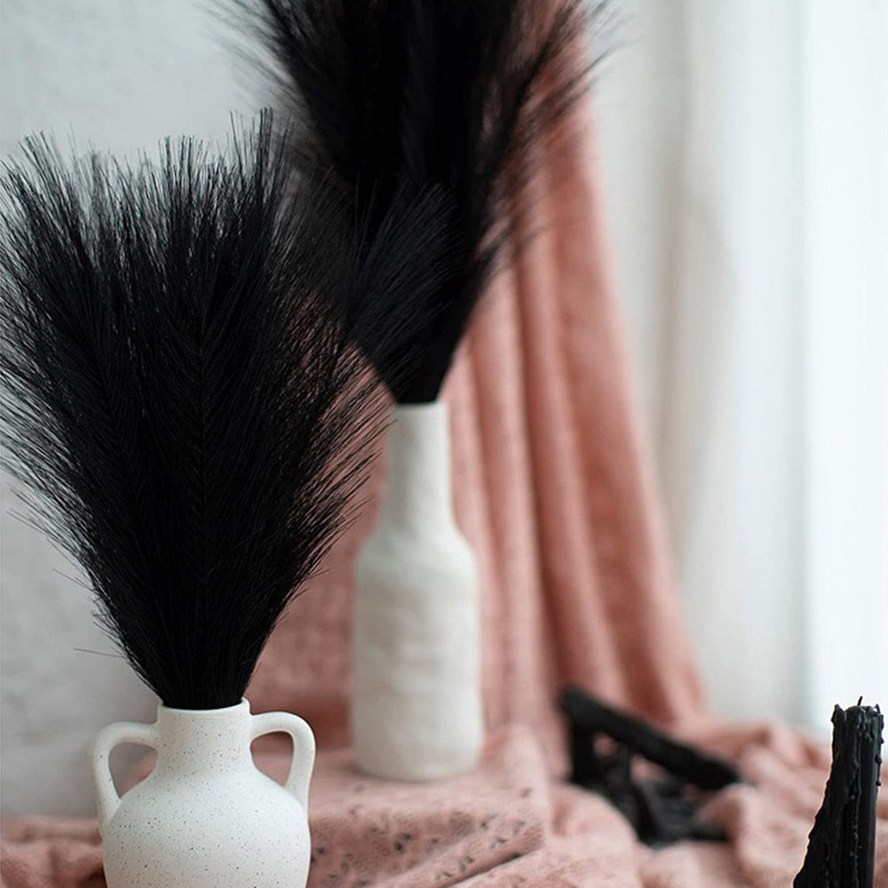 4Pcs Black Faux Pampas Grass 50cm Tall Artificial Reed Fluffy Stems Home Decor