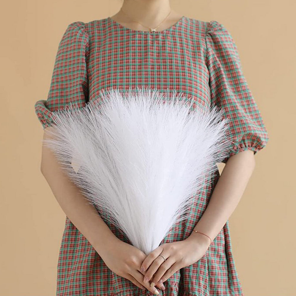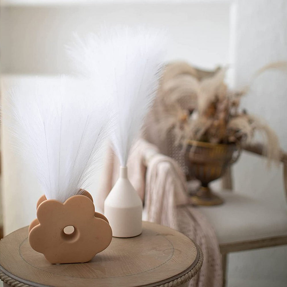 4Pcs White Faux Pampas Grass 50cm Tall Artificial Reed Fluffy Stems Home Decor