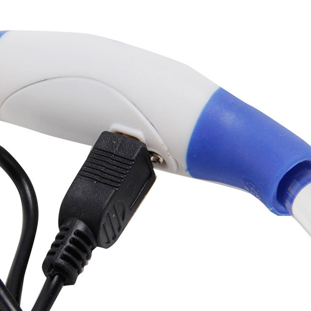 USB rechargeable, built-in rechargeable battery, and is equipped with a charging cable.
