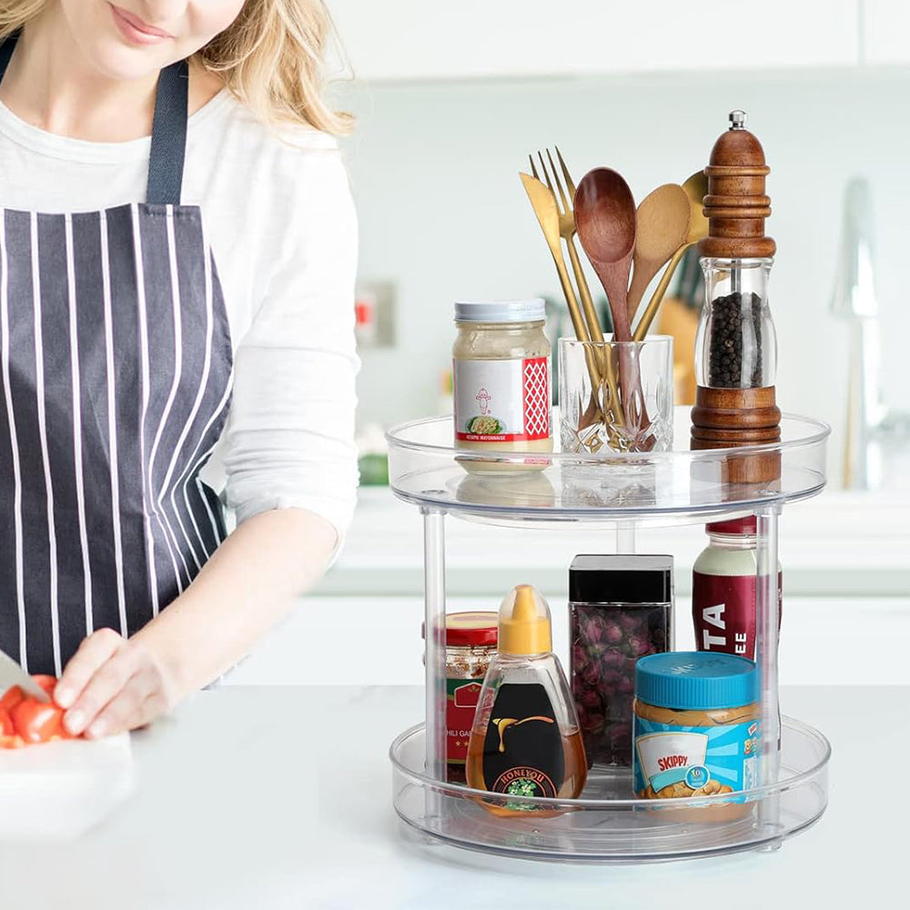 2 Tier Lazy Susan Turntable Spice Rack Organizer for Kitchen Storage Tray S