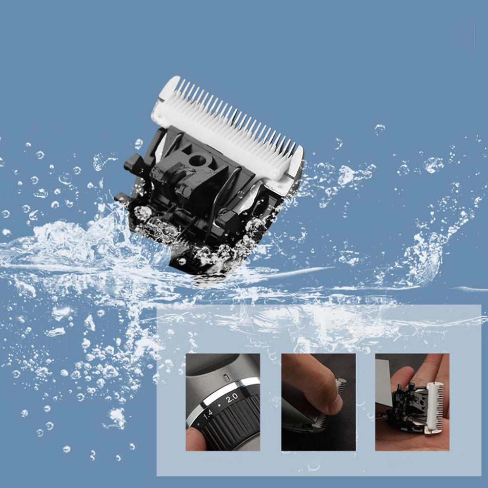 The trimming head portion of the trimmer is detachable for easy cleaning, both dry and underwater.