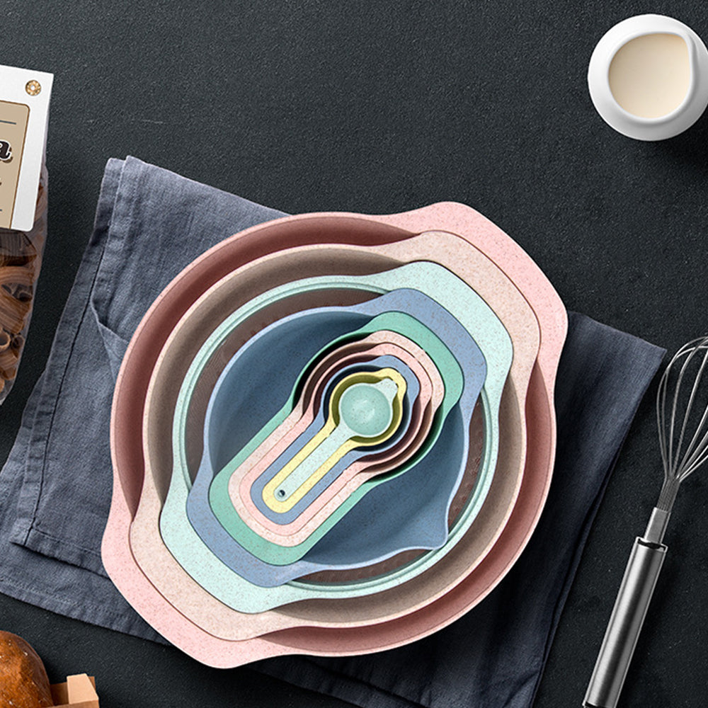 10Pcs Mixing Bowl Set Plastic Serving Bowls Nesting Bowls with Measuring Spoon