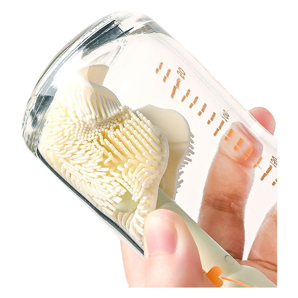 Baby bottle brush with liquid silicone bristles and a plug-in extendable wand is safe and practical for easy access to the bottom and cleaning residue.