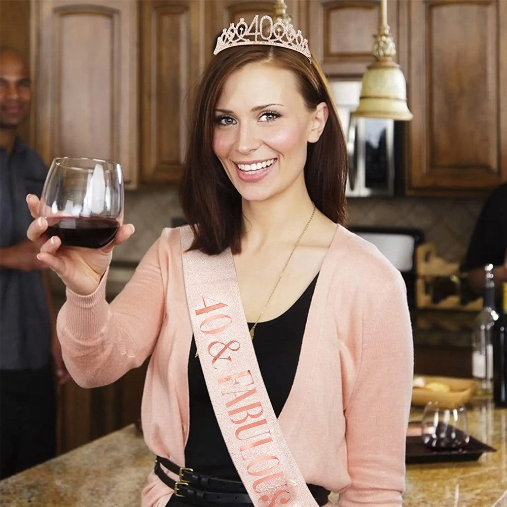 10-Piece 40th Birthday Decoration Set Birthday Crown and Sash for Girls Women
