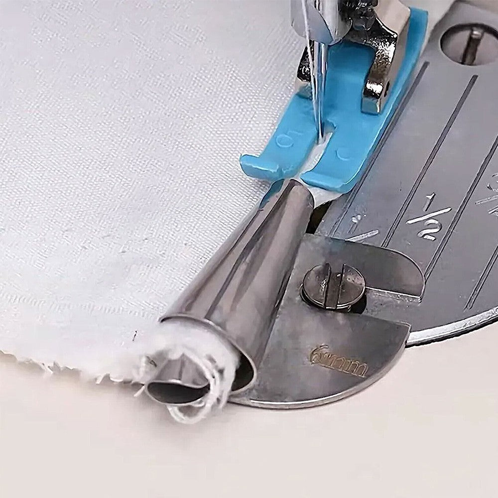 This hemming foot securely grips the fabric, making it versatile for a wide range of hemming projects with precise and reliable results.