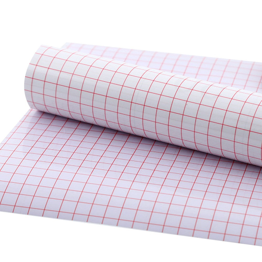 Red grid aids in right-angle cuts, facilitating precise measuring and cutting to reduce wastage.