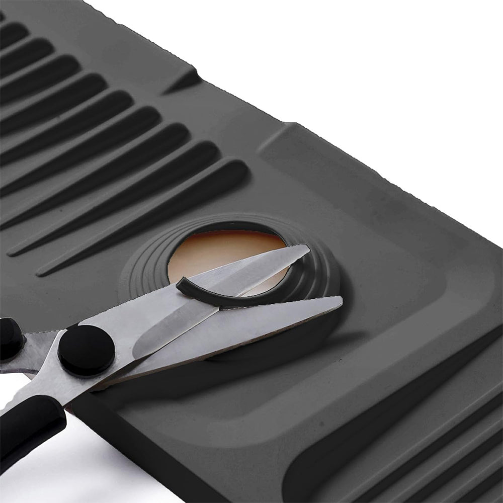 Our silicone draining mat adopt a cuttable hole design, you can cut the silicone sink faucet mat splash guard hole to fit the faucet tap.