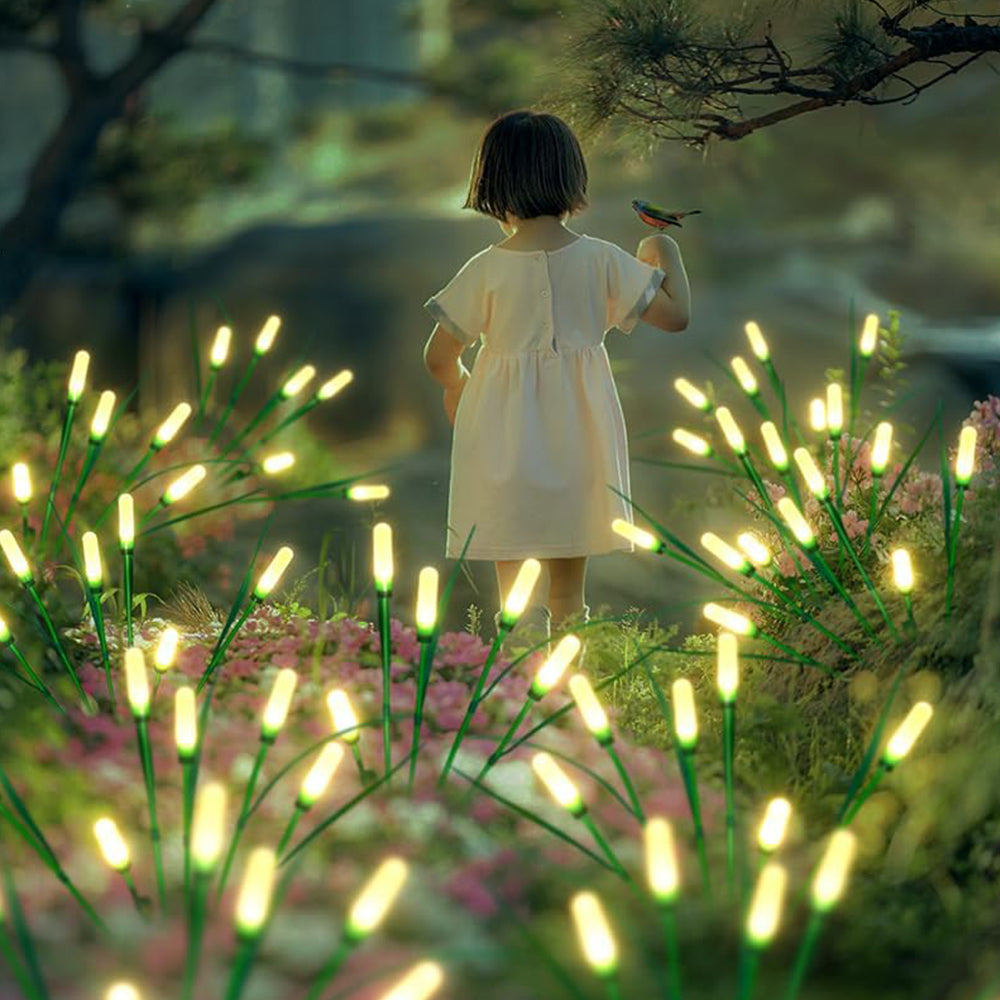 The stems and leaves of the lamp are made of green ABS plastic, the realistic reed shape design can be well integrated into the garden path.