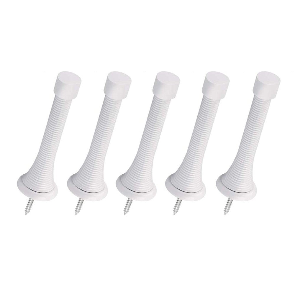 5Pcs Flexible Spring Door Stoppers with Rubber Bumper Tips White