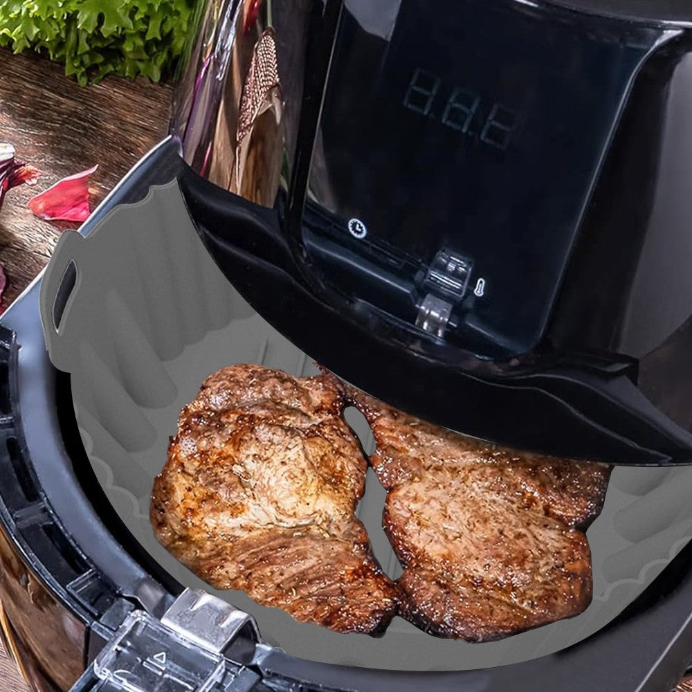 1Pc Round Air Fryer Silicone Pot Liner Oven Baking Tray with Handle - Grey