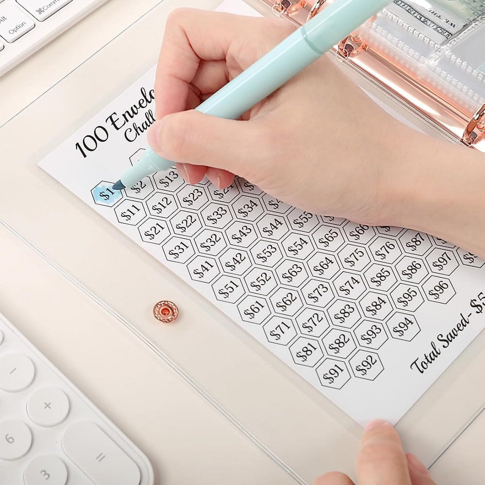 100 Envelopes Money Saving Challenge Binder Budget Planner Book - Pink