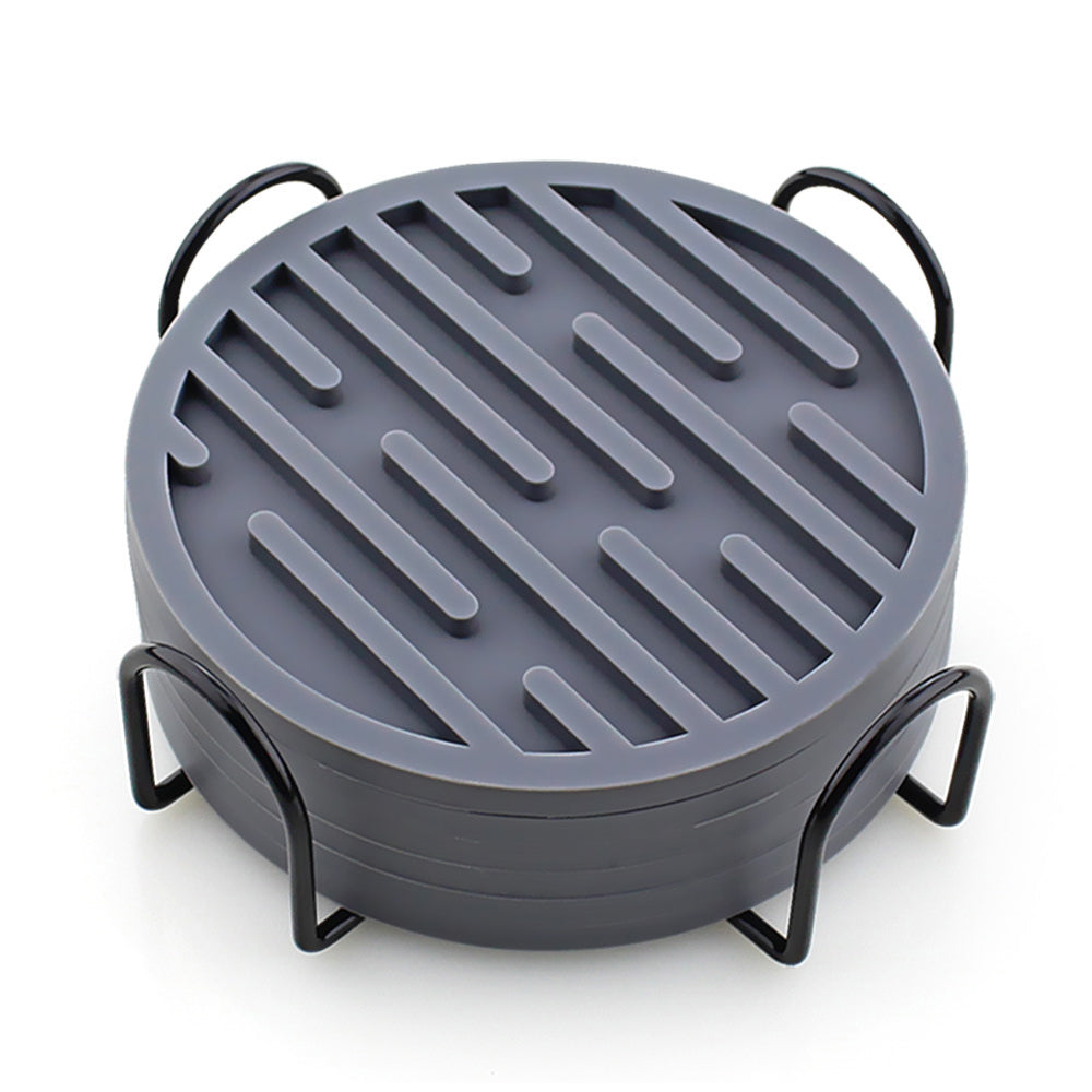 6X Round Silicone Drinks Coasters Coffee Cup Mats Pad with Coaster Holder Grey